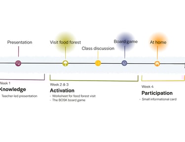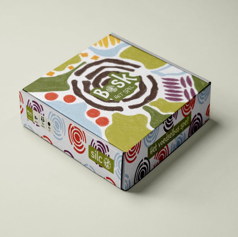 BOSK is een strategisch bordspel voor leerlingen van 11–12 jaar waarin zij op een speelse manier leren hoe een voedselbos werkt. Door tegels te plaatsen die verschillende lagen voorstellen – zoals wortels, planten, struiken en bomen – bouwen spelers stap voor stap hun eigen bos.